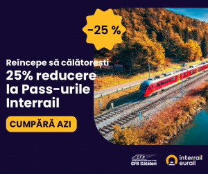 Cumpără Interrail Global Pass sau One Country Pass* în perioada 25 noiembrie – 17 decembrie 2025 și profită de 25% reducere.