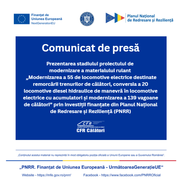 Materiale foto PNRR sunt disponibile pe www.cfrcalatori.ro în pagina dedicată acestuia: