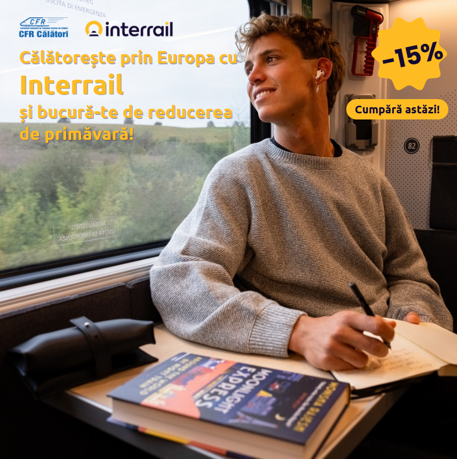 10 martie 2026 În perioada 10 martie, ora 08:00 – 31 martie 2026, ora 11:00, călătorii pot cumpăra Interrail Global Pass sau Interrail One Country Pass, cu 15% reducere față de prețul standard. Ofertele Interrail permit accesul la peste 33.000 de destinații din Europa și reprezintă o oportunitate de a descoperi continentul într-un mod flexibil și confortabil. Prin această promoție specială, Interrail încurajează pasagerii să ia o pauză de la timpul petrecut în fața ecranelor și să redescopere bucuria călătoriei cu trenul. Călătoria pe calea ferată oferă libertatea de a admira peisaje spectaculoase, de a descoperi locuri noi și de a crea conexiuni autentice cu oameni și destinații. Condiții de rambursare pentru ofertele cumpărate în perioada promoției: biletele pot fi rambursate în termen de 7...